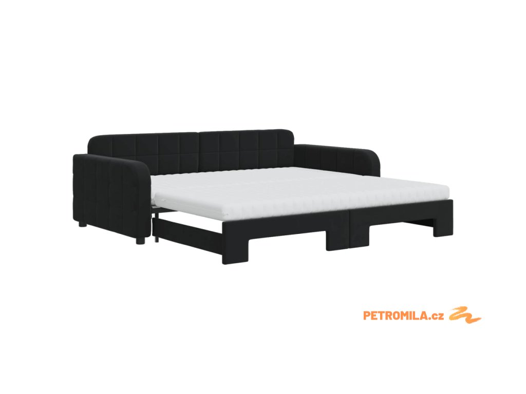 Válenda s přistýlkou a matracemi černá 100 x 200 cm samet