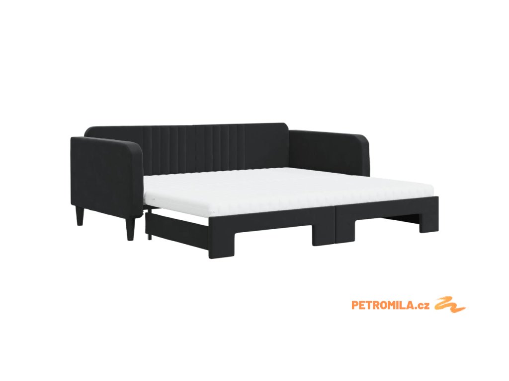 Válenda s přistýlkou a matracemi černá 100 x 200 cm samet
