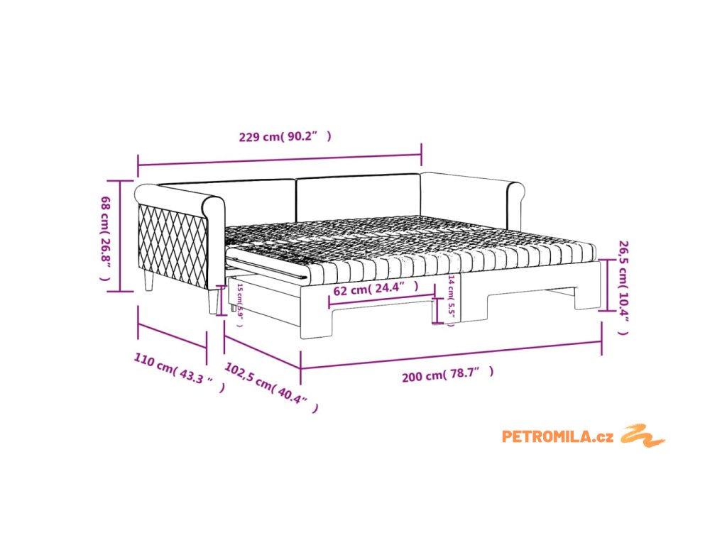 - Rozměry (nevysunuté): 229 x 110 x 68 cm (D x Š x V)