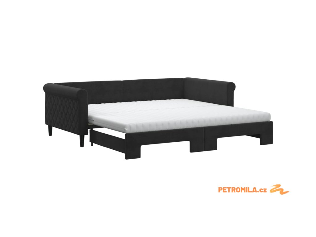 Válenda s přistýlkou a matracemi černá 100 x 200 cm samet