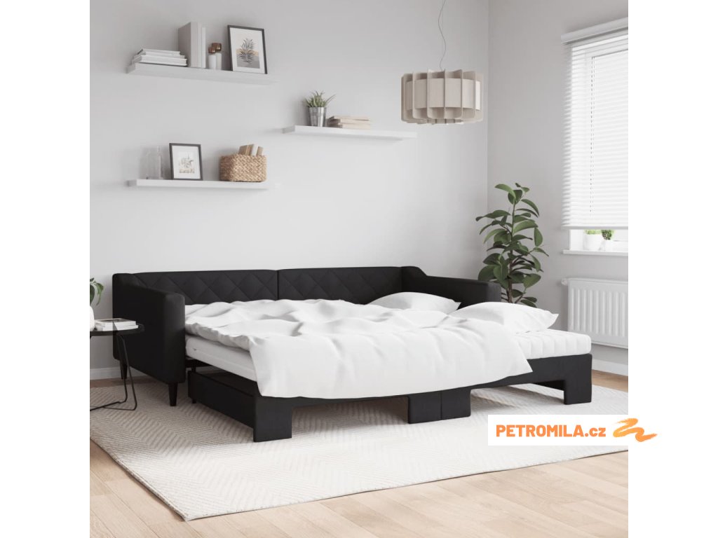 Válenda s přistýlkou a matracemi černá 100 x 200 cm textil