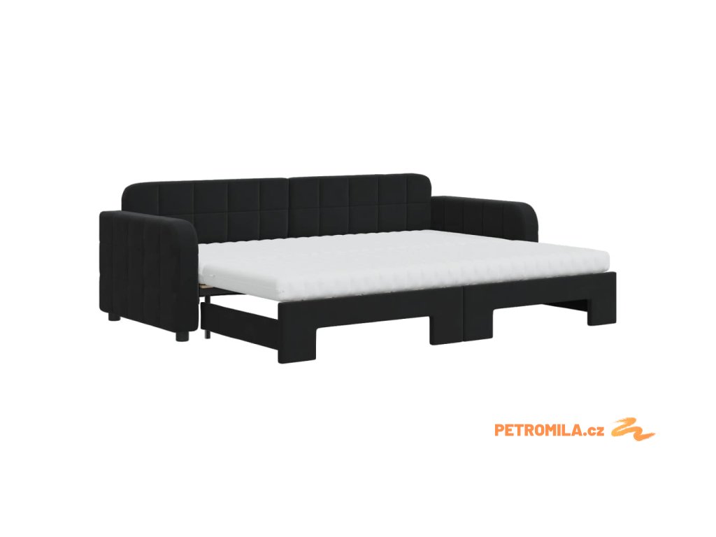 Válenda s přistýlkou a matracemi černá 80 x 200 cm samet