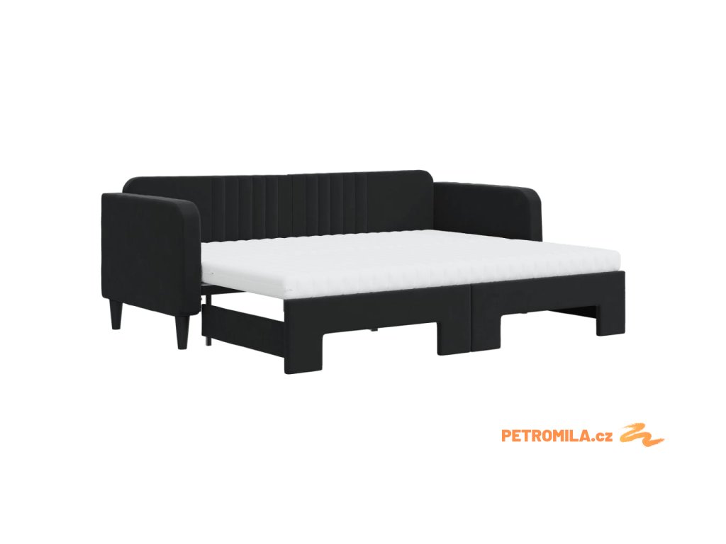 Válenda s přistýlkou a matracemi černá 80 x 200 cm samet
