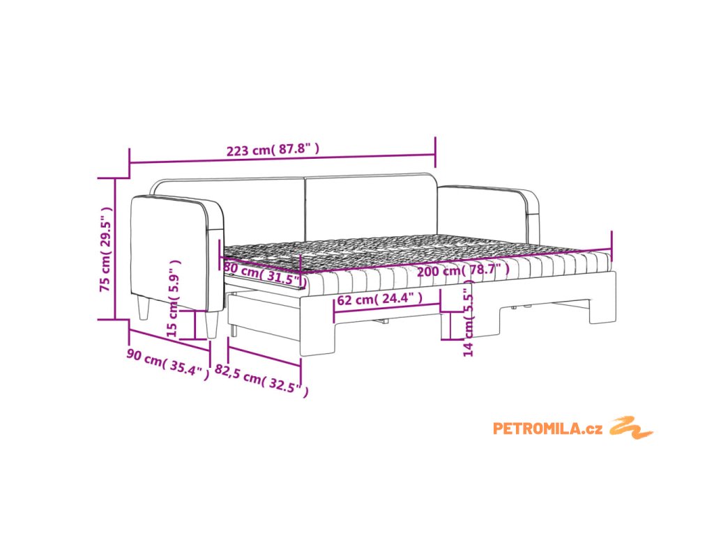 - Rozměry (nevysunuté): 223 x 90 x 75 cm (D x Š x V)