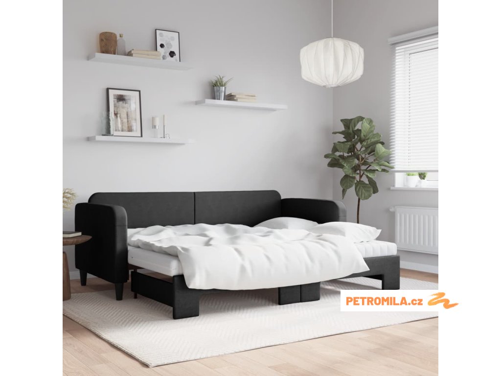Válenda s přistýlkou a matracemi černá 80 x 200 cm textil