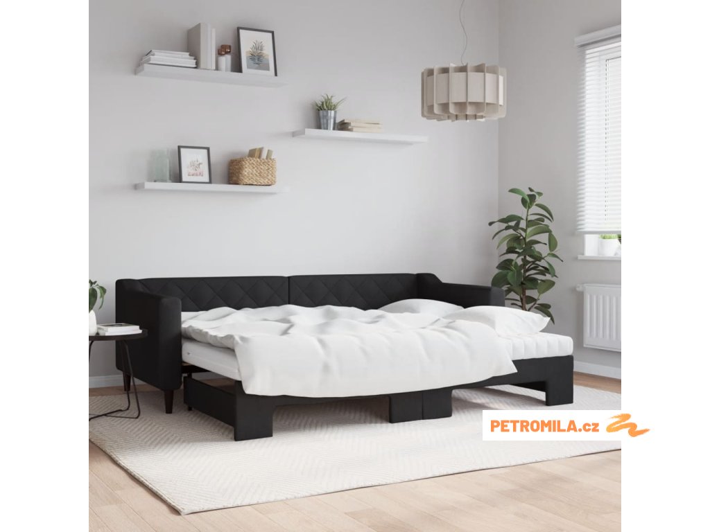 Válenda s přistýlkou a matracemi černá 80 x 200 cm textil
