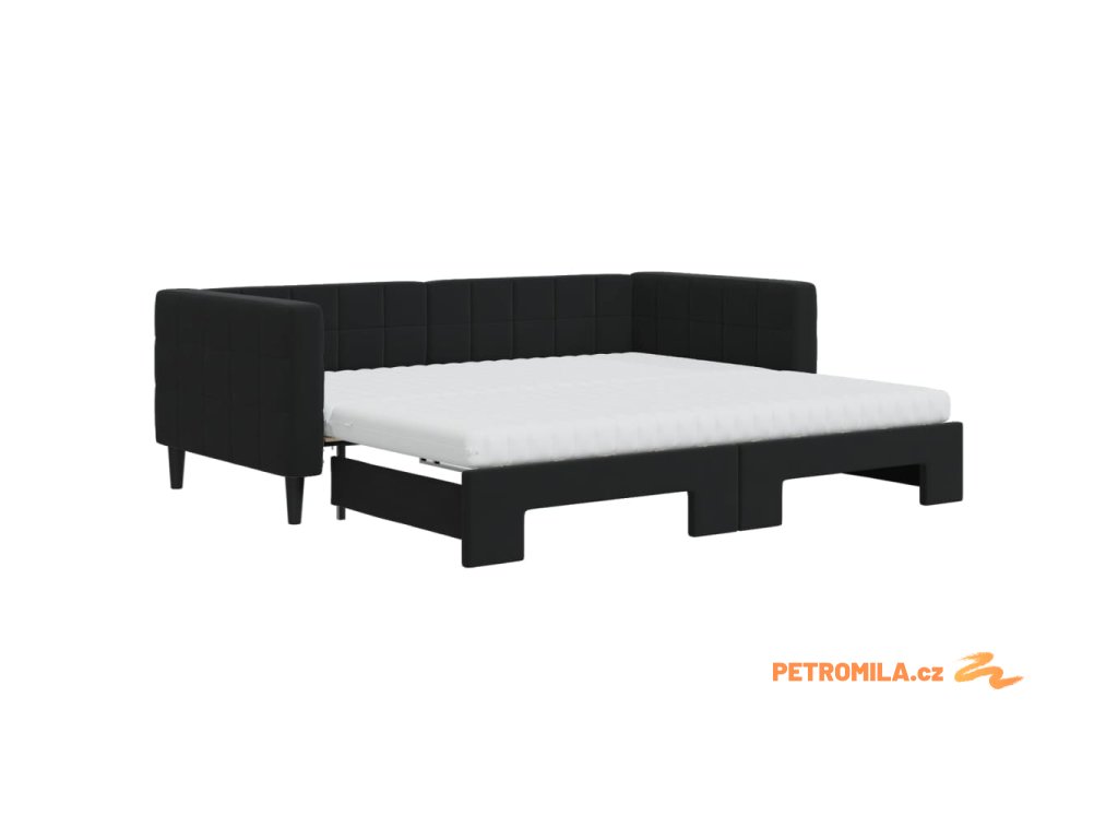 Válenda s přistýlkou a matracemi černá 90 x 190 cm samet