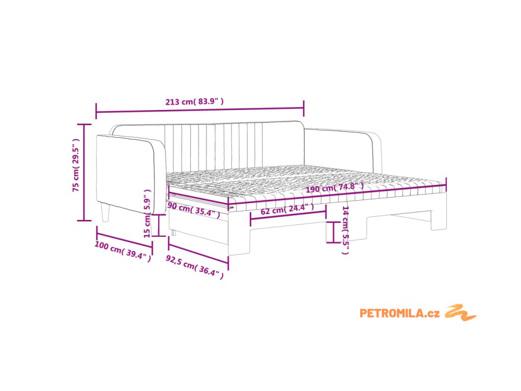 - Rozměry (nevysunuté): 213 x 100 x 75 cm (D x Š x V)