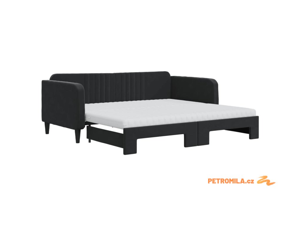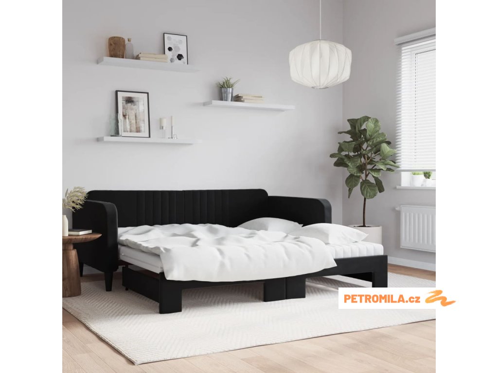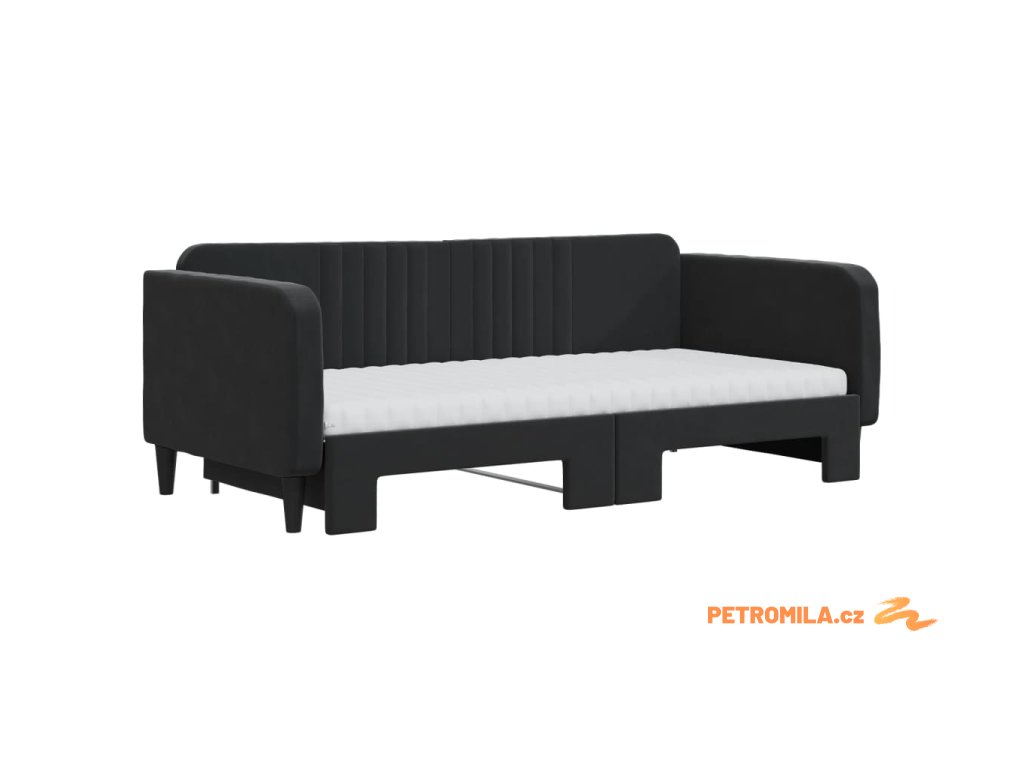 Válenda s přistýlkou a matracemi černá 90 x 190 cm samet