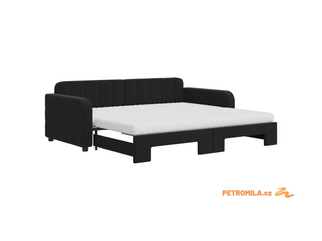 Válenda s přistýlkou a matracemi černá 90 x 190 cm samet