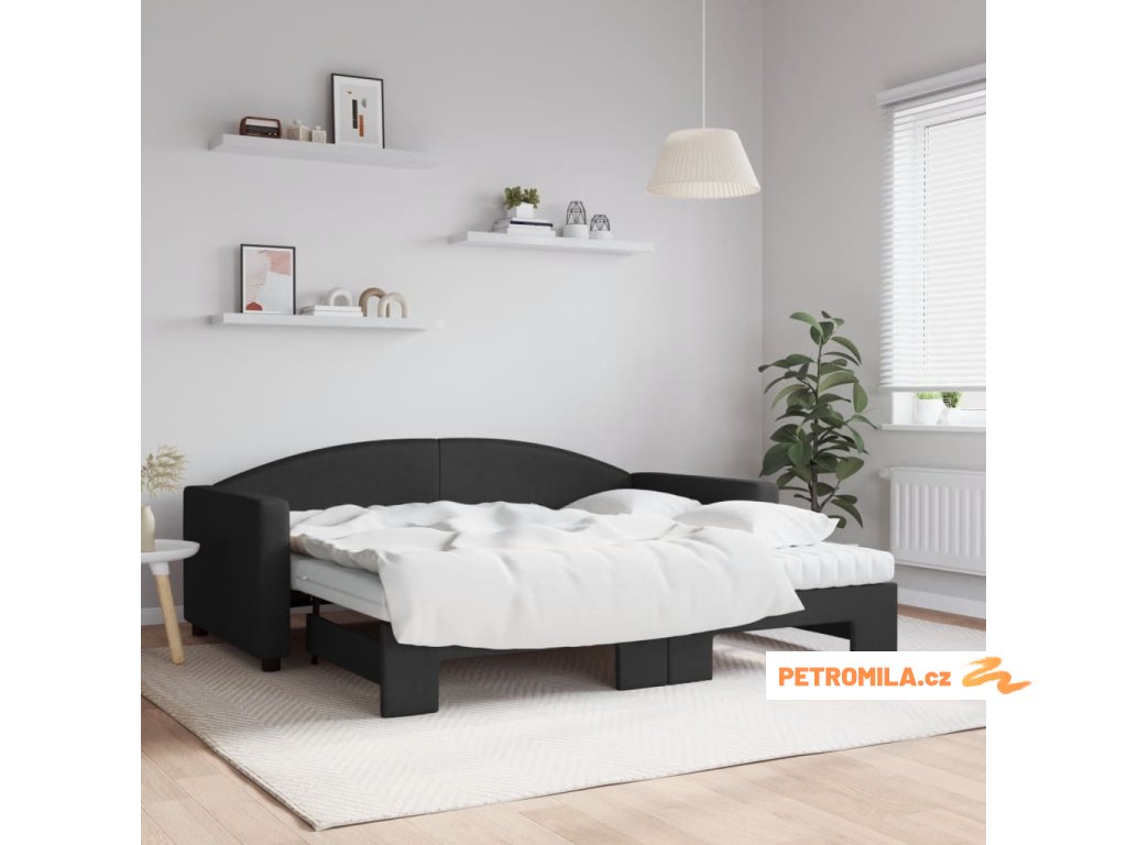 Válenda s přistýlkou a matracemi černá 90 x 190 cm textil