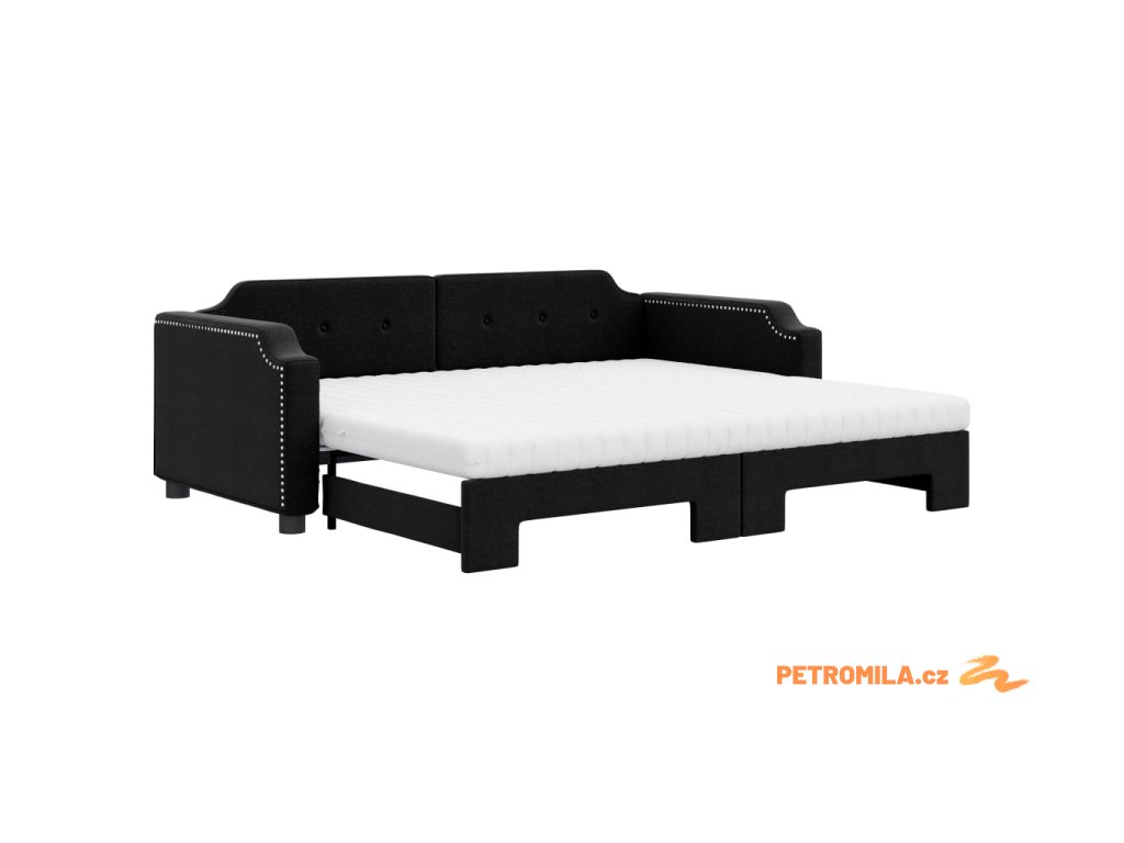 Válenda s přistýlkou a matracemi černá 90 x 190 cm textil