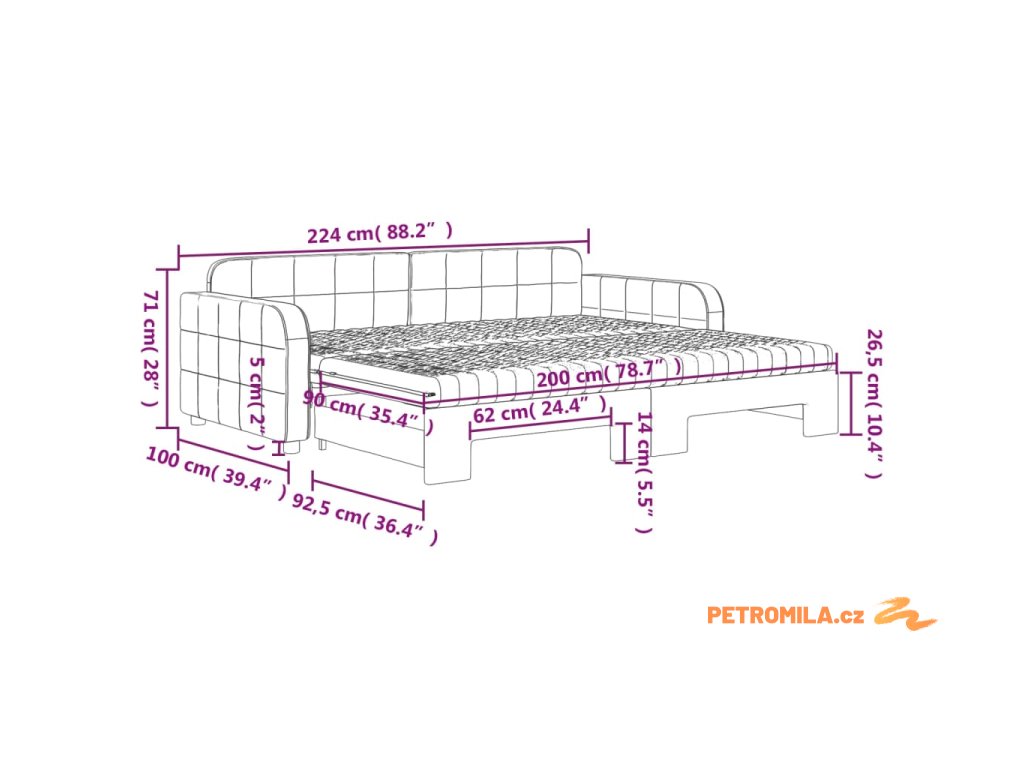 - Rozměry (nevysunuté): 224 x 100 x 71 cm (D x Š x V)