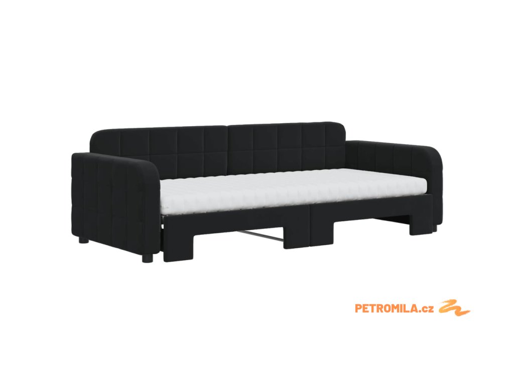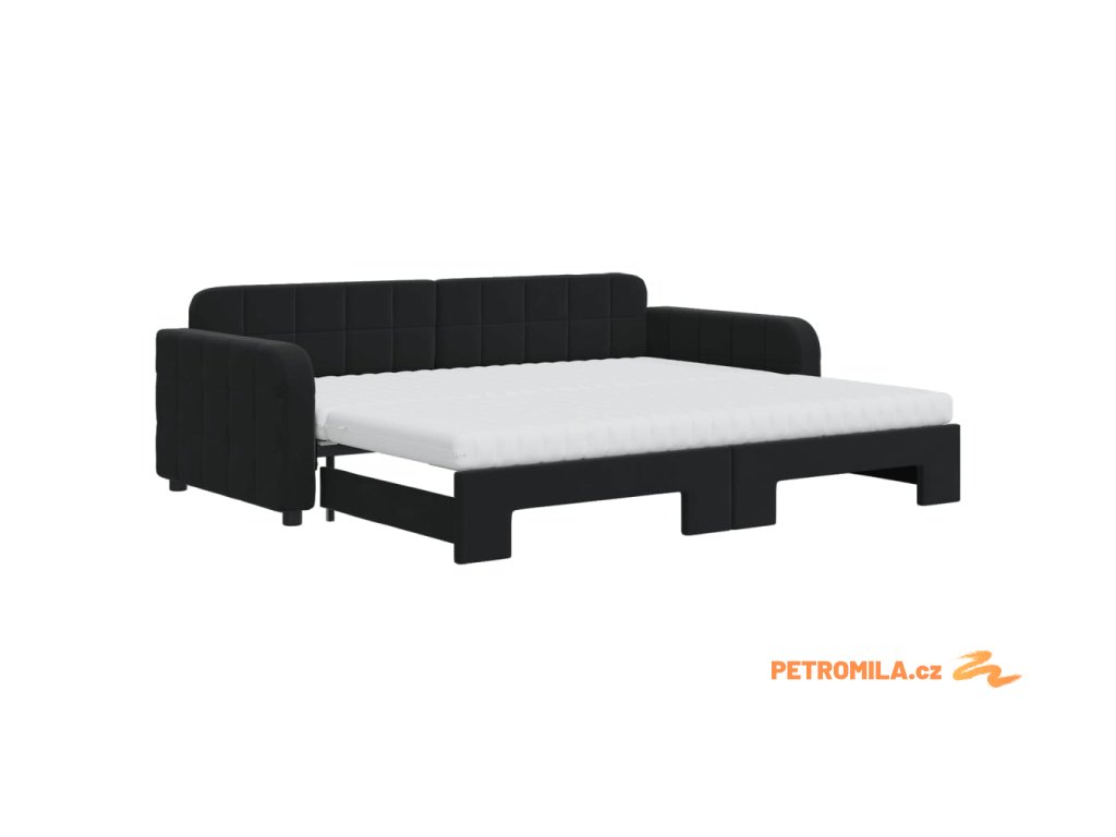Válenda s přistýlkou a matracemi černá 90 x 200 cm samet
