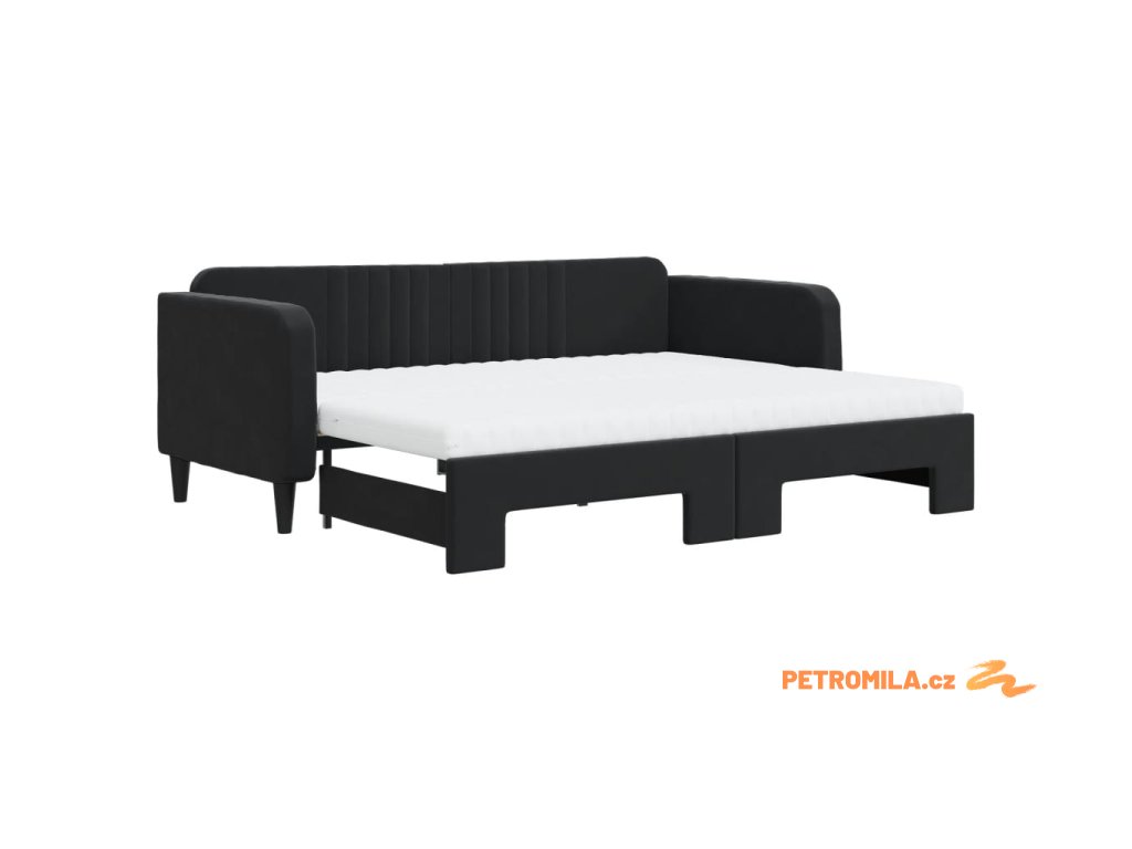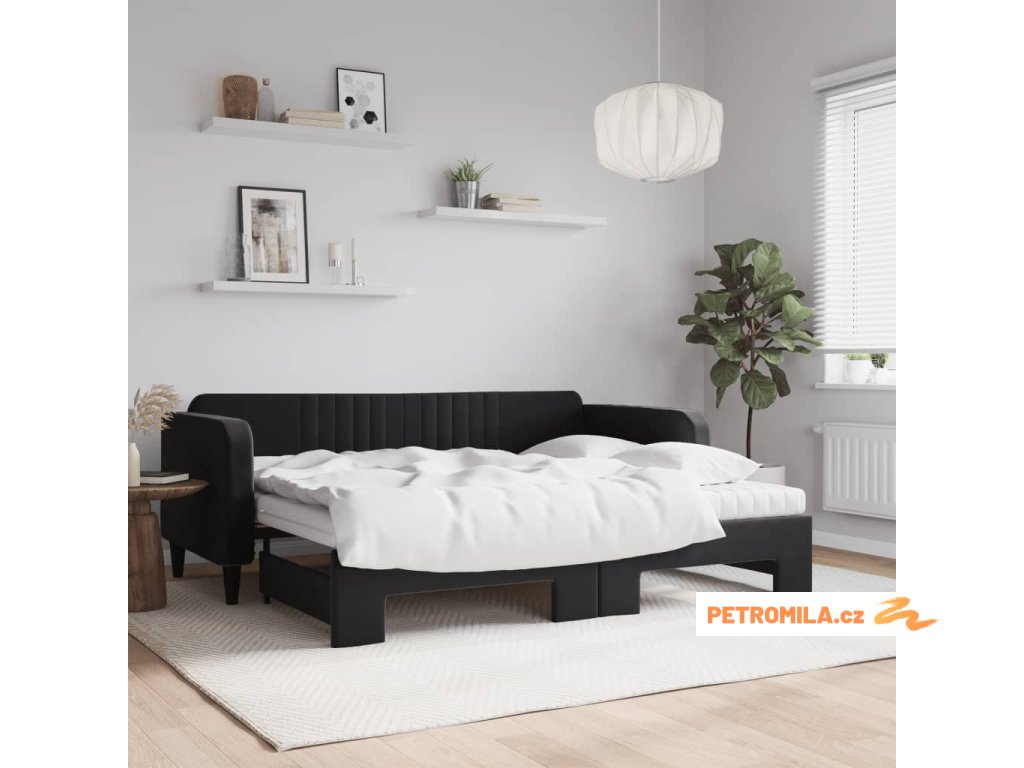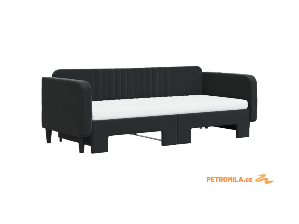 Válenda s přistýlkou a matracemi černá 90 x 200 cm samet