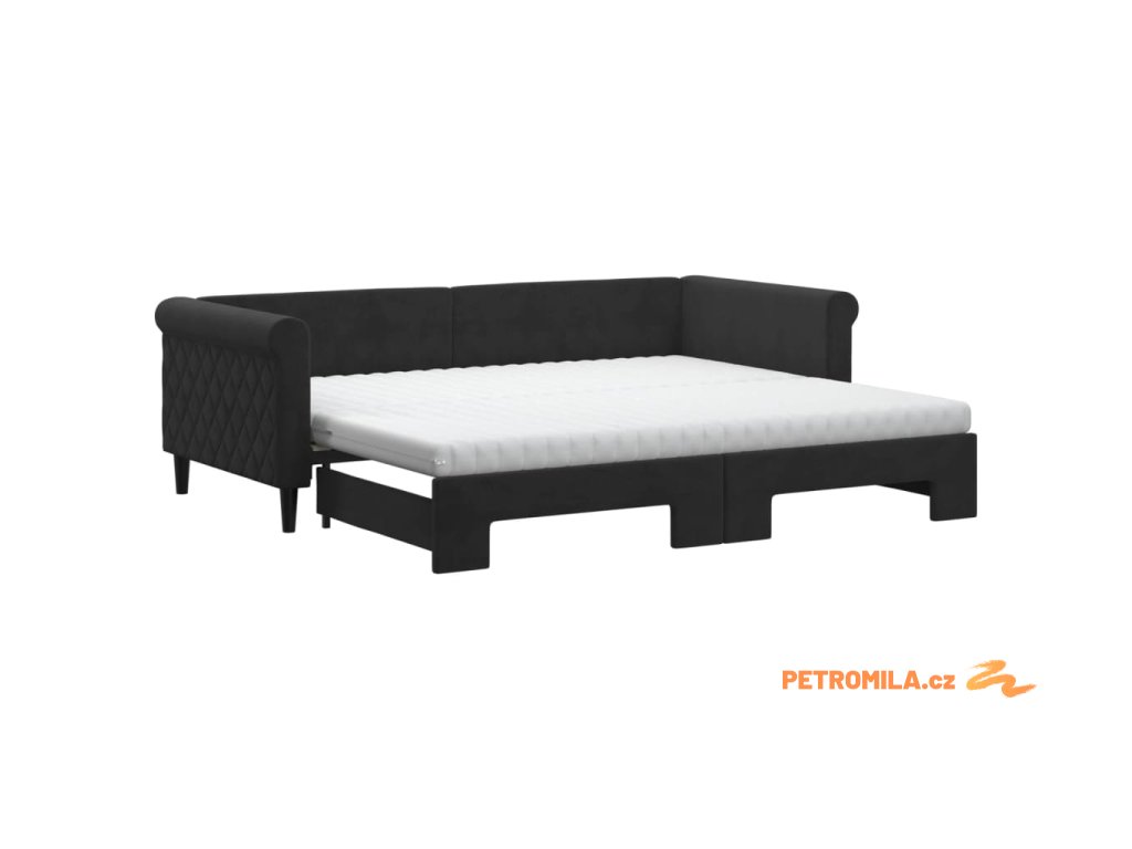 Válenda s přistýlkou a matracemi černá 90 x 200 cm samet