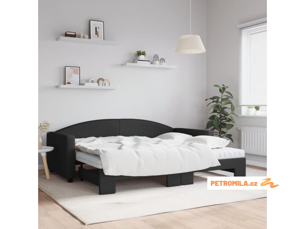 Válenda s přistýlkou a matracemi černá 90 x 200 cm textil
