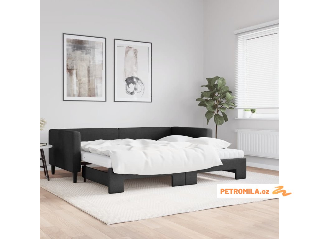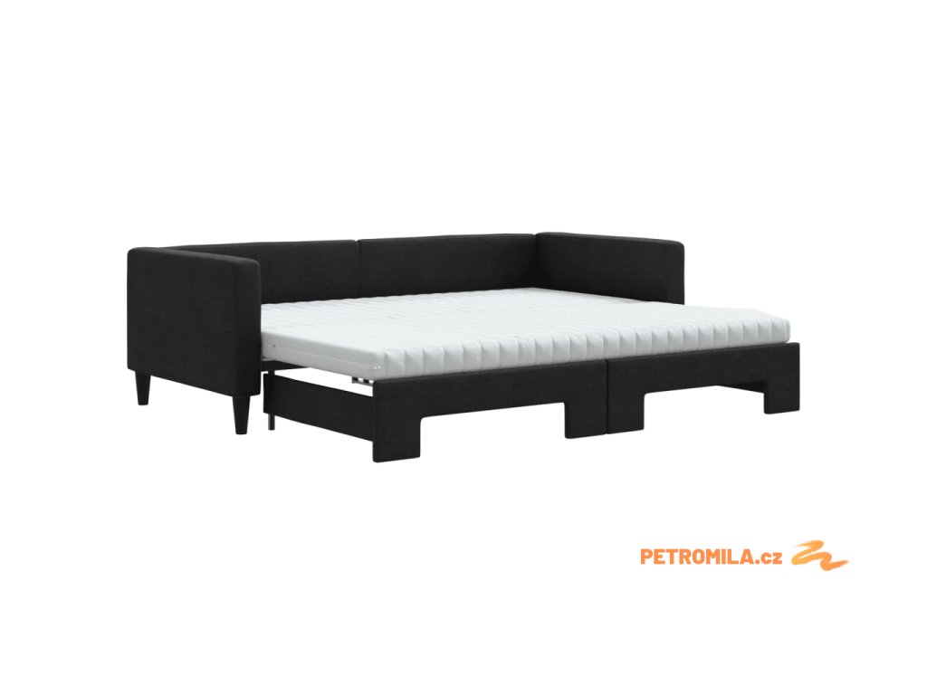 Válenda s přistýlkou a matracemi černá 90 x 200 cm textil