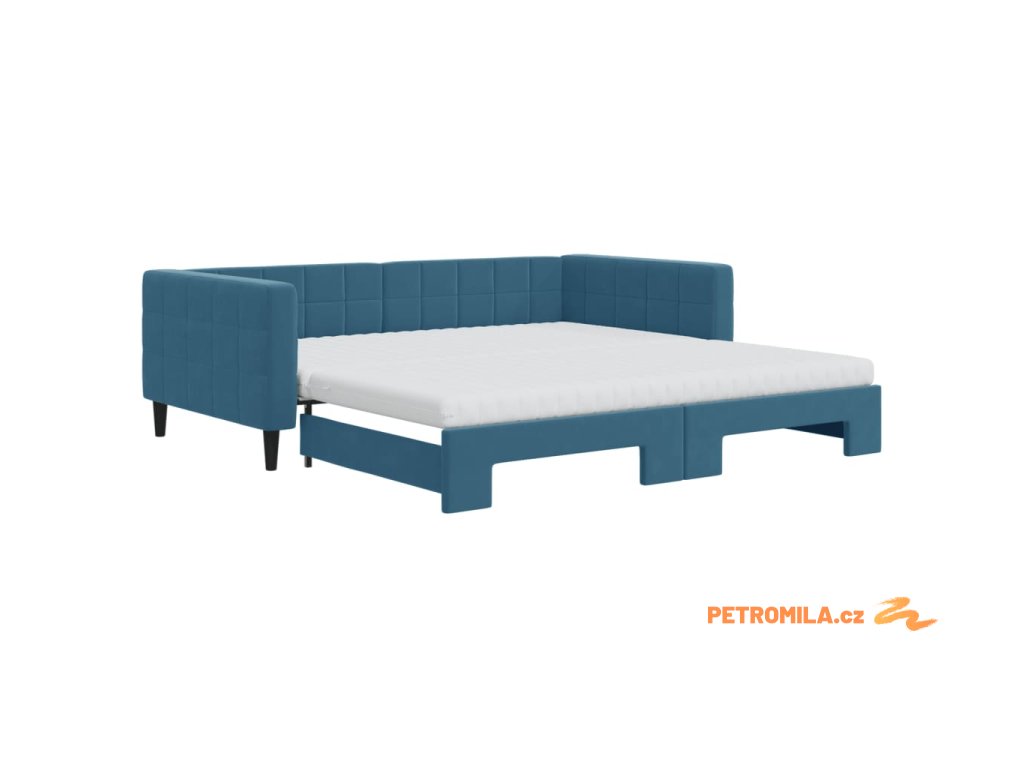 Válenda s přistýlkou a matracemi modrá 100 x 200 cm samet