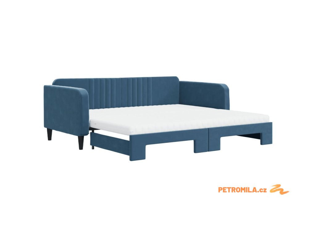 Válenda s přistýlkou a matracemi modrá 100 x 200 cm samet