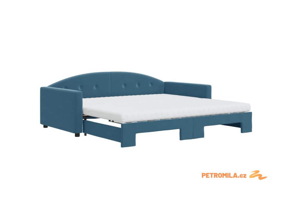 Válenda s přistýlkou a matracemi modrá 100 x 200 cm samet