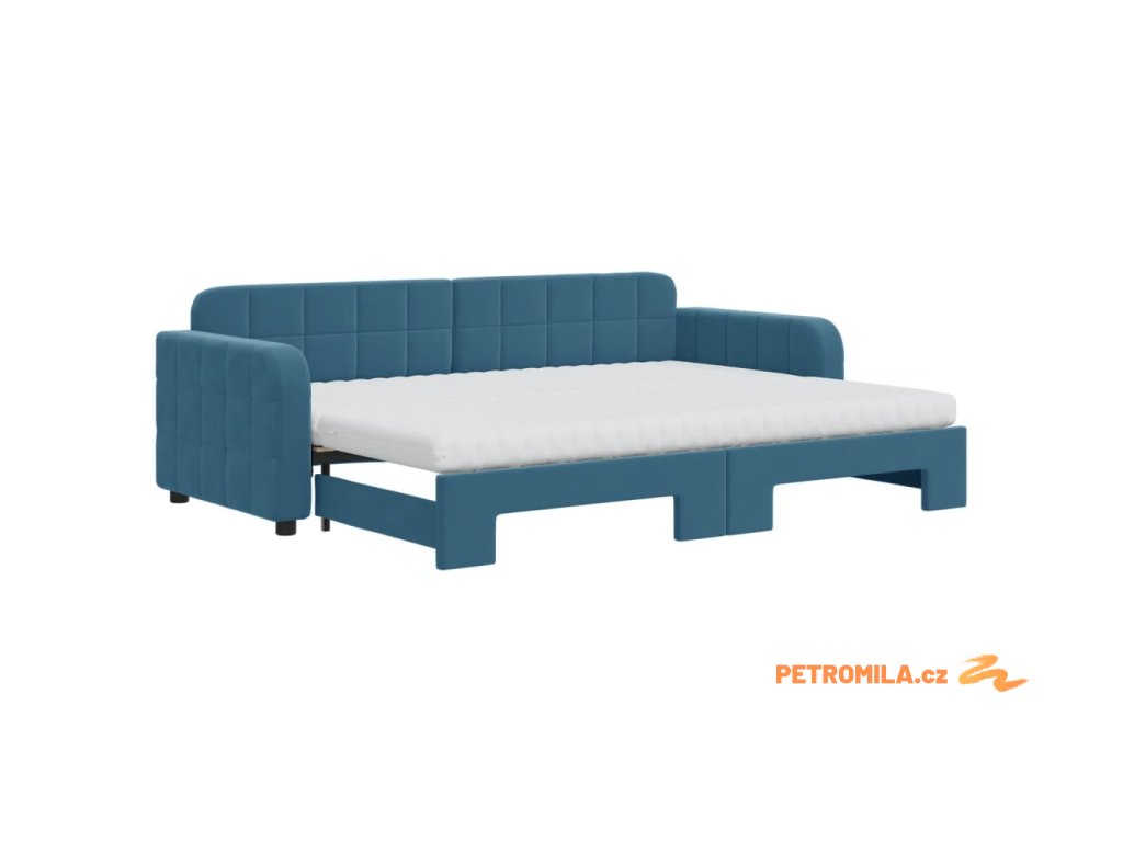 Válenda s přistýlkou a matracemi modrá 80 x 200 cm samet