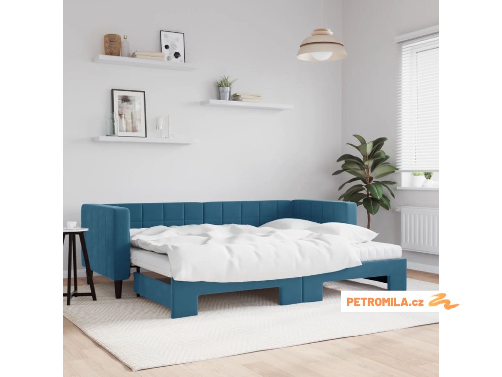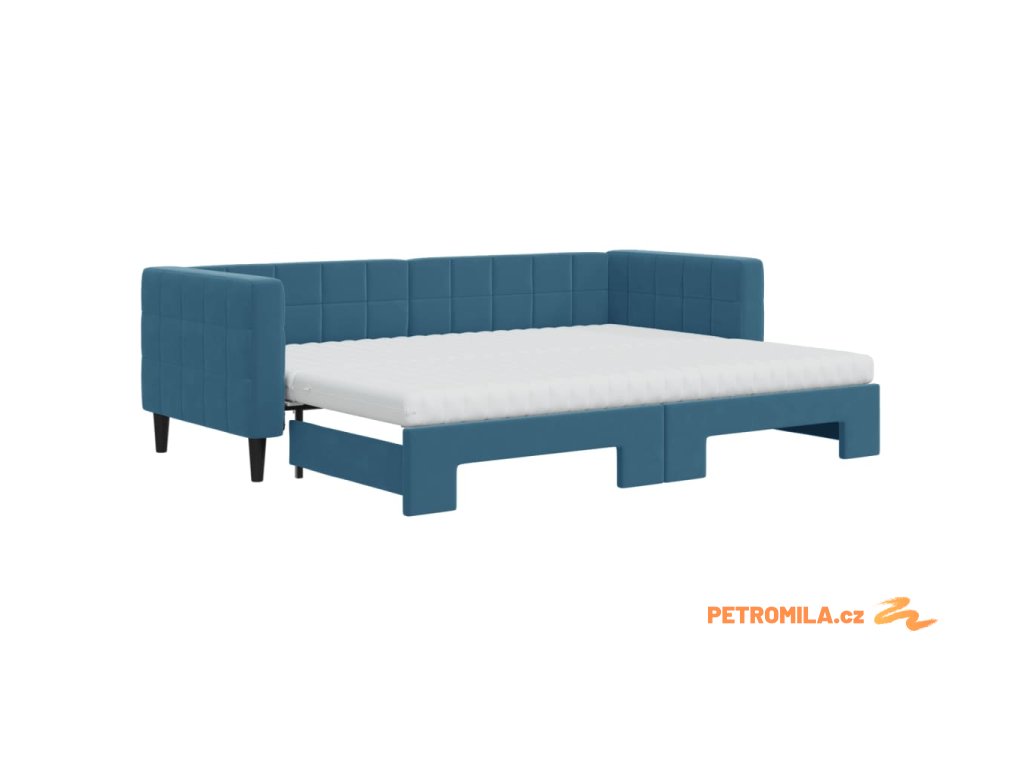Válenda s přistýlkou a matracemi modrá 80 x 200 cm samet
