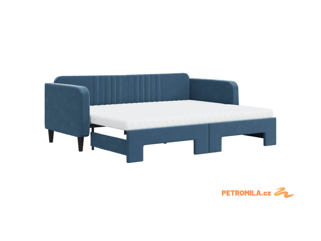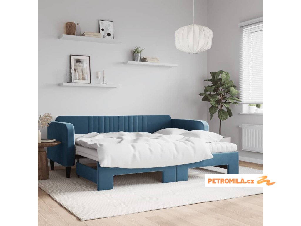 Válenda s přistýlkou a matracemi modrá 90 x 200 cm samet