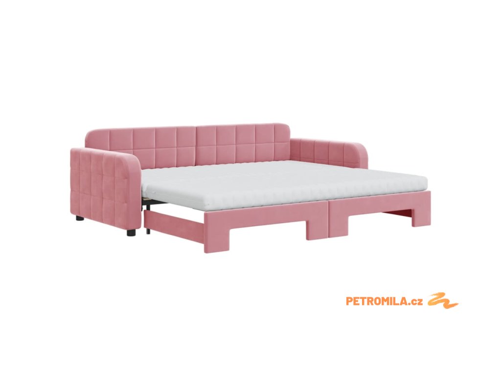 Válenda s přistýlkou a matracemi růžová 90 x 200 cm samet
