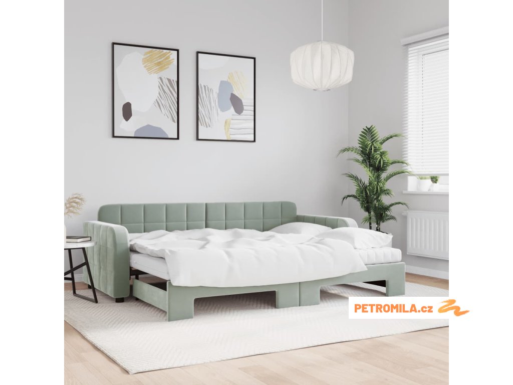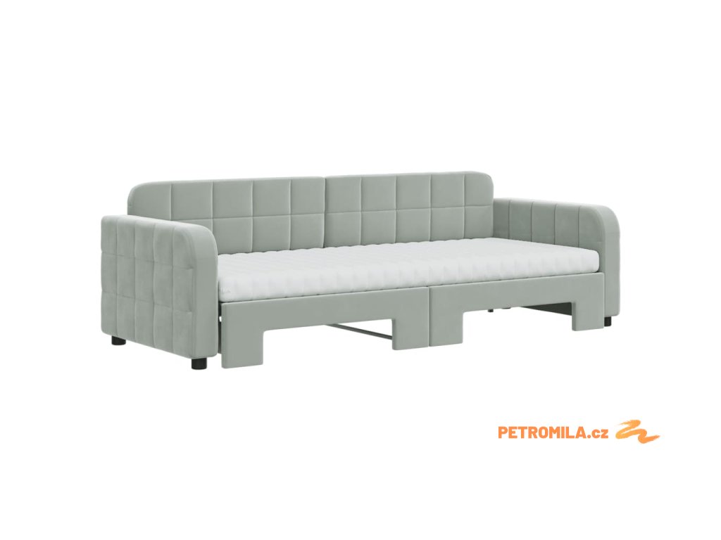 Válenda s přistýlkou a matracemi světle šedá 80 x 200 cm samet