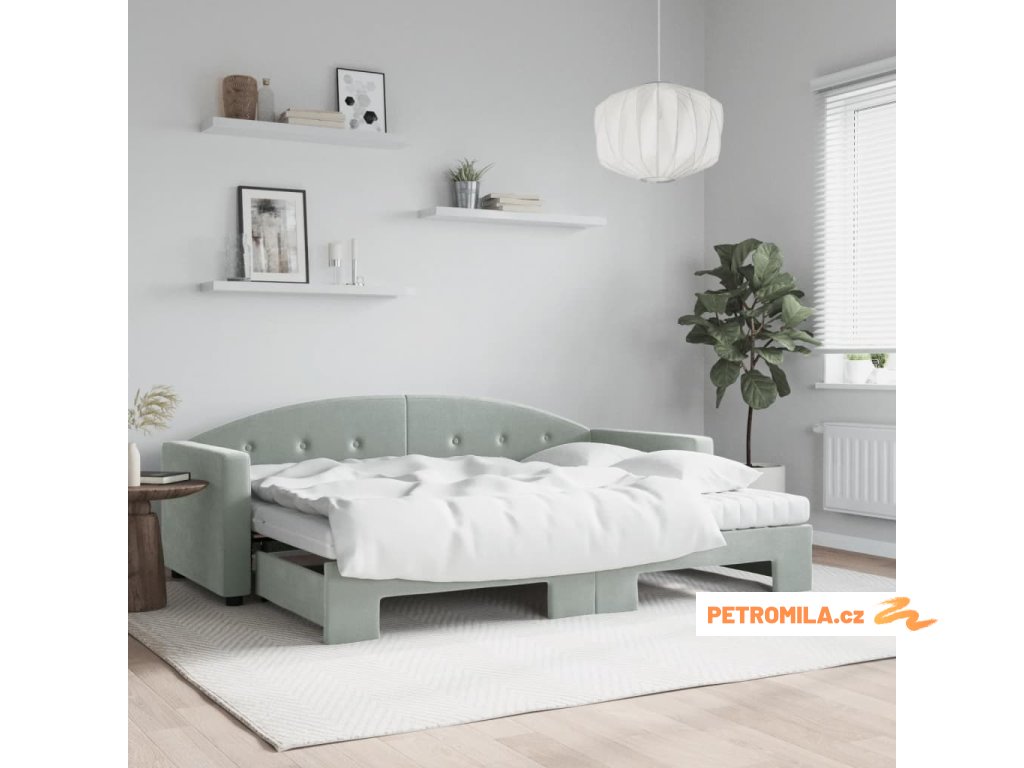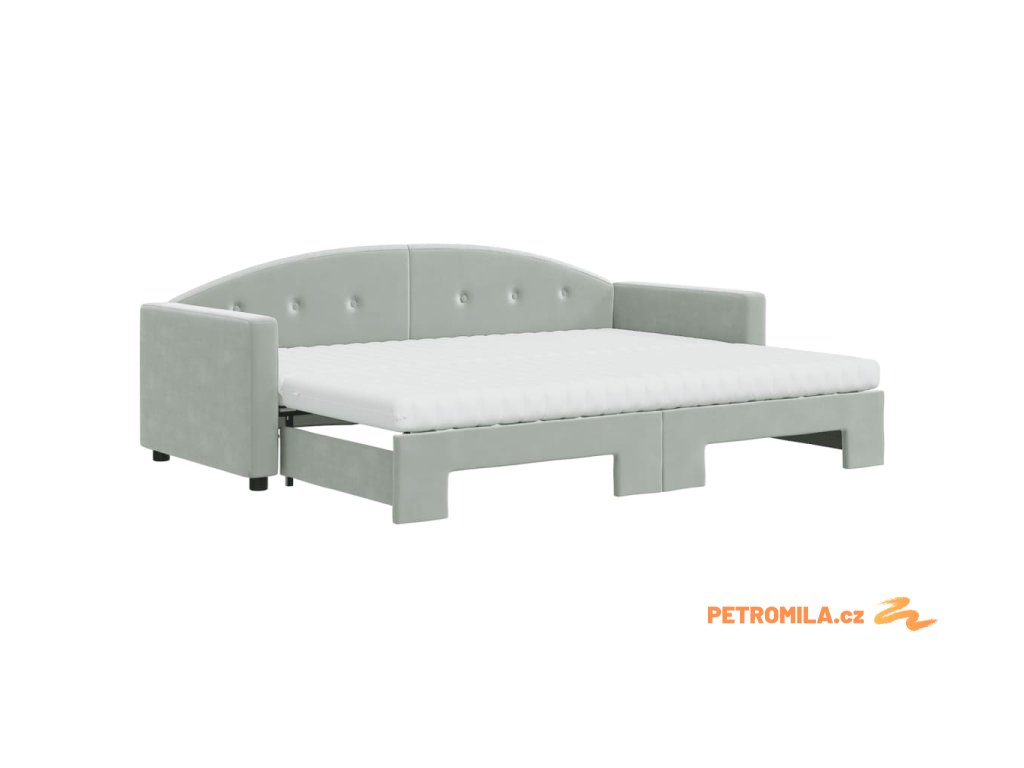 Válenda s přistýlkou a matracemi světle šedá 80 x 200 cm samet