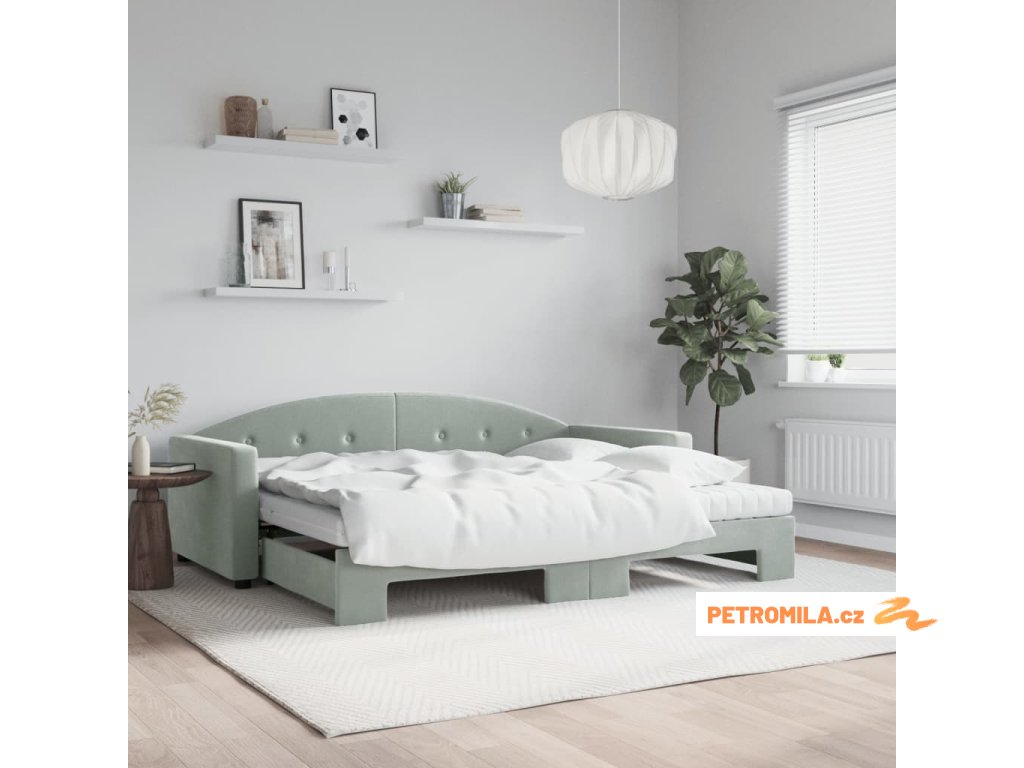 Válenda s přistýlkou a matracemi světle šedá 90 x 190 cm samet