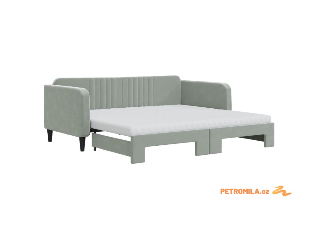Válenda s přistýlkou a matracemi světle šedá 90 x 190 cm samet