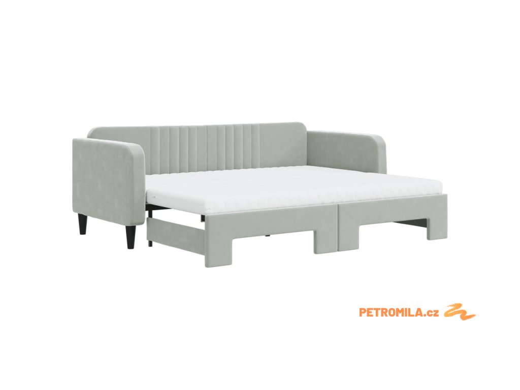Válenda s přistýlkou a matracemi světle šedá 90 x 200 cm samet