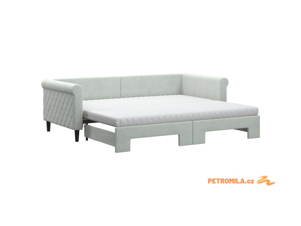 Válenda s přistýlkou a matracemi světle šedá 90 x 200 cm samet