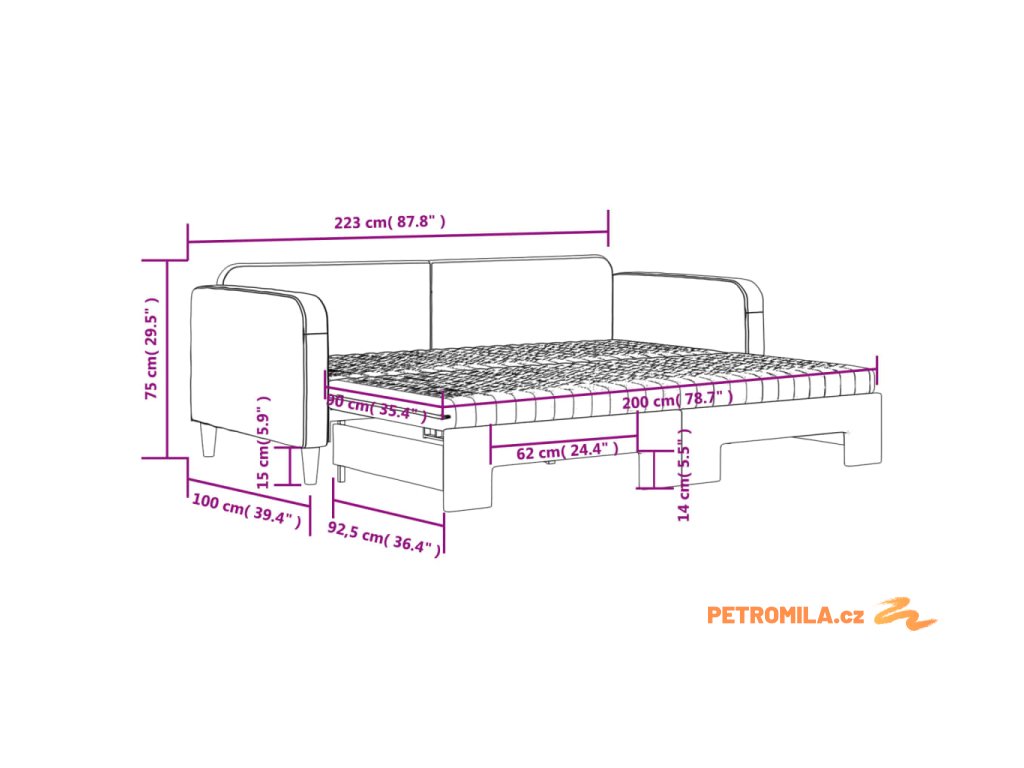 - Rozměry (nevysunuté): 223 x 100 x 75 cm (D x Š x V)