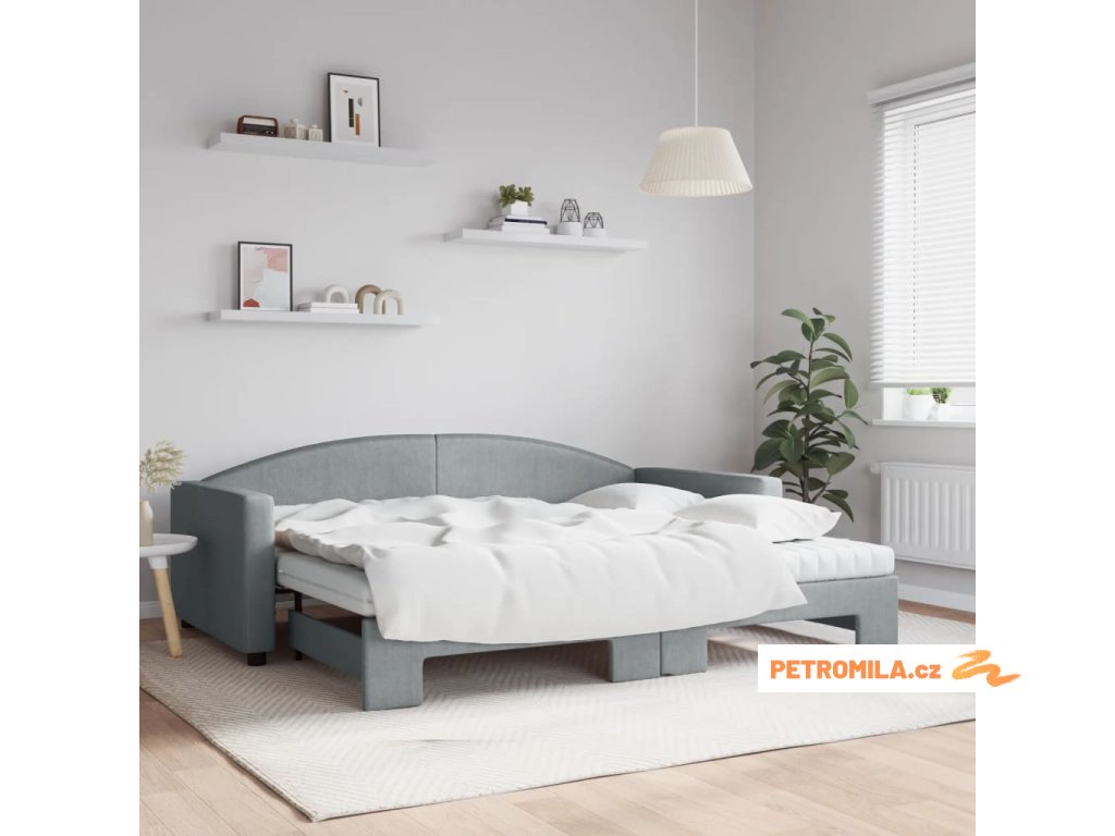 Válenda s přistýlkou a matracemi světle šedá 90 x 200 cm textil