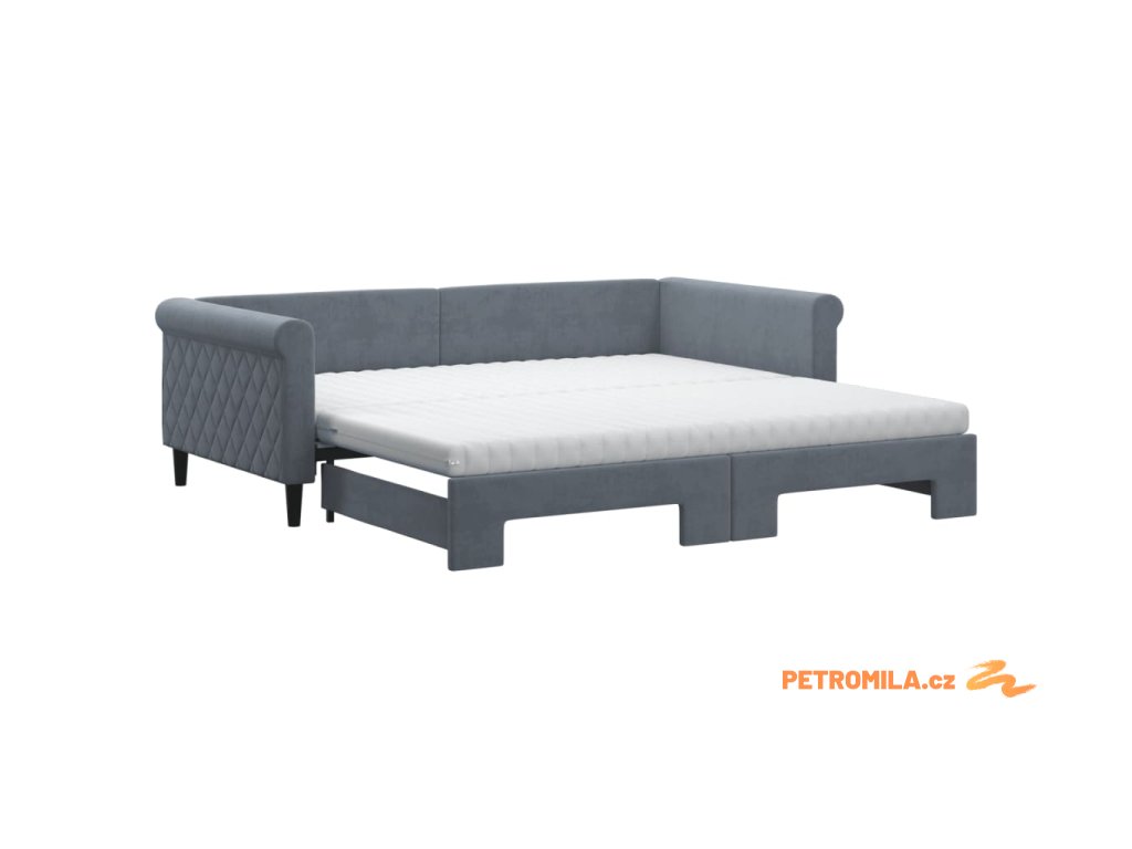 Válenda s přistýlkou a matracemi tmavě šedá 100 x 200 cm samet