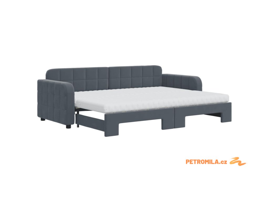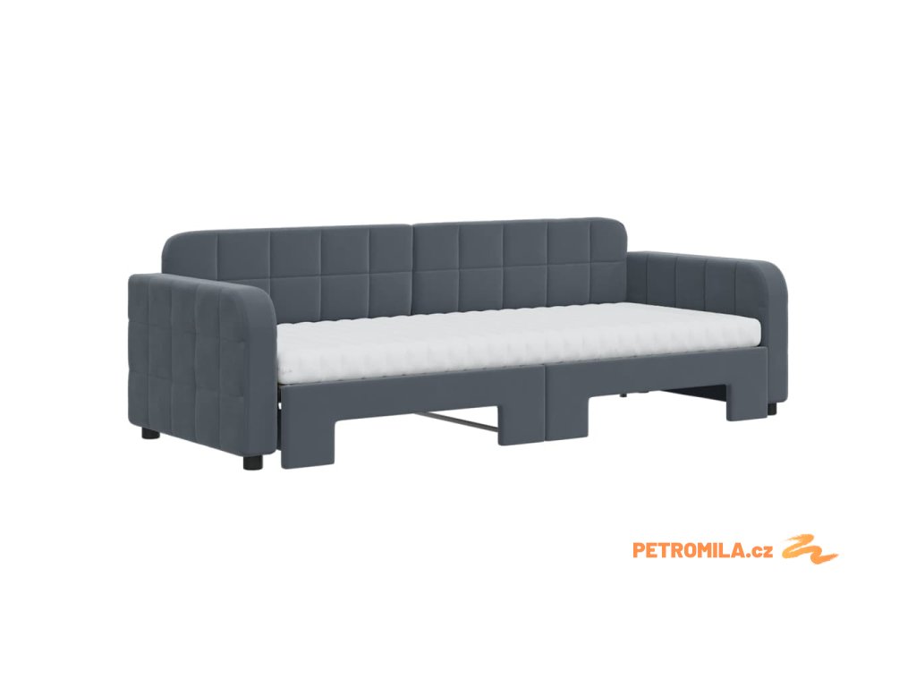 Válenda s přistýlkou a matracemi tmavě šedá 80 x 200 cm samet