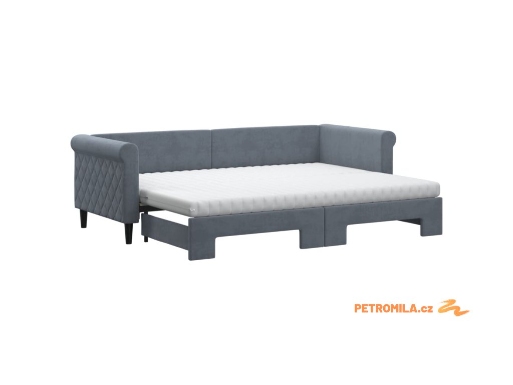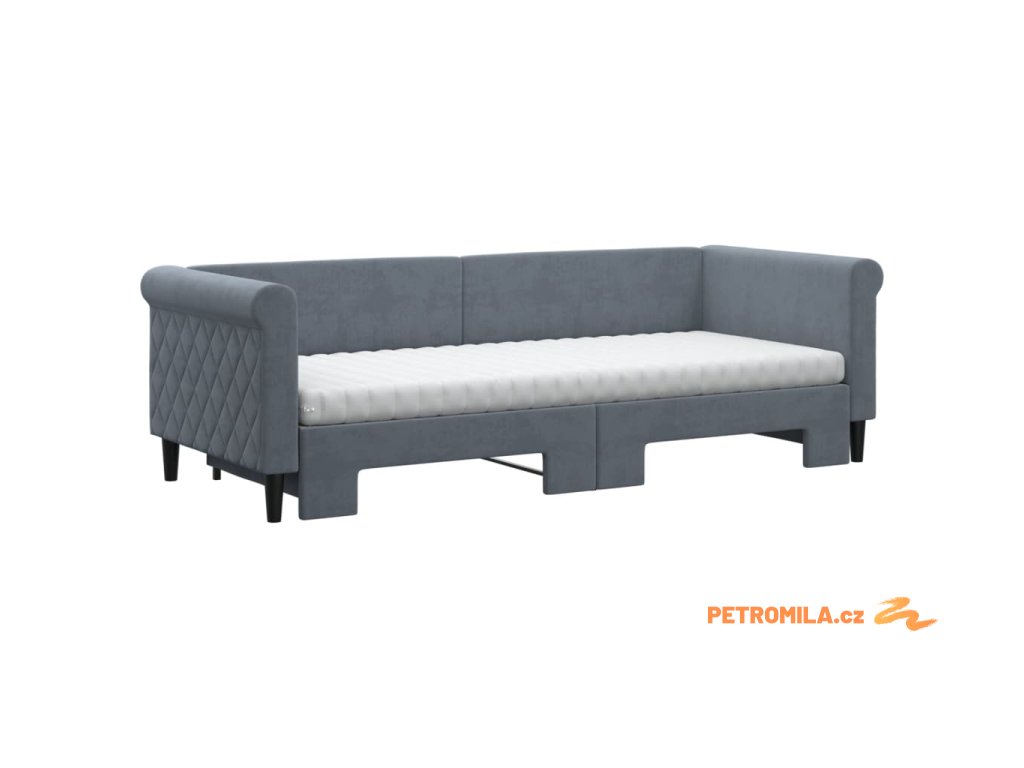 Válenda s přistýlkou a matracemi tmavě šedá 80 x 200 cm samet