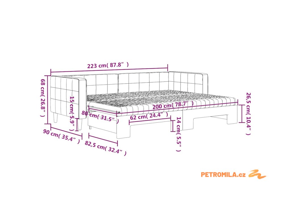 - Rozměry (nevysunuté): 223 x 90 x 68 cm (D x Š x V)