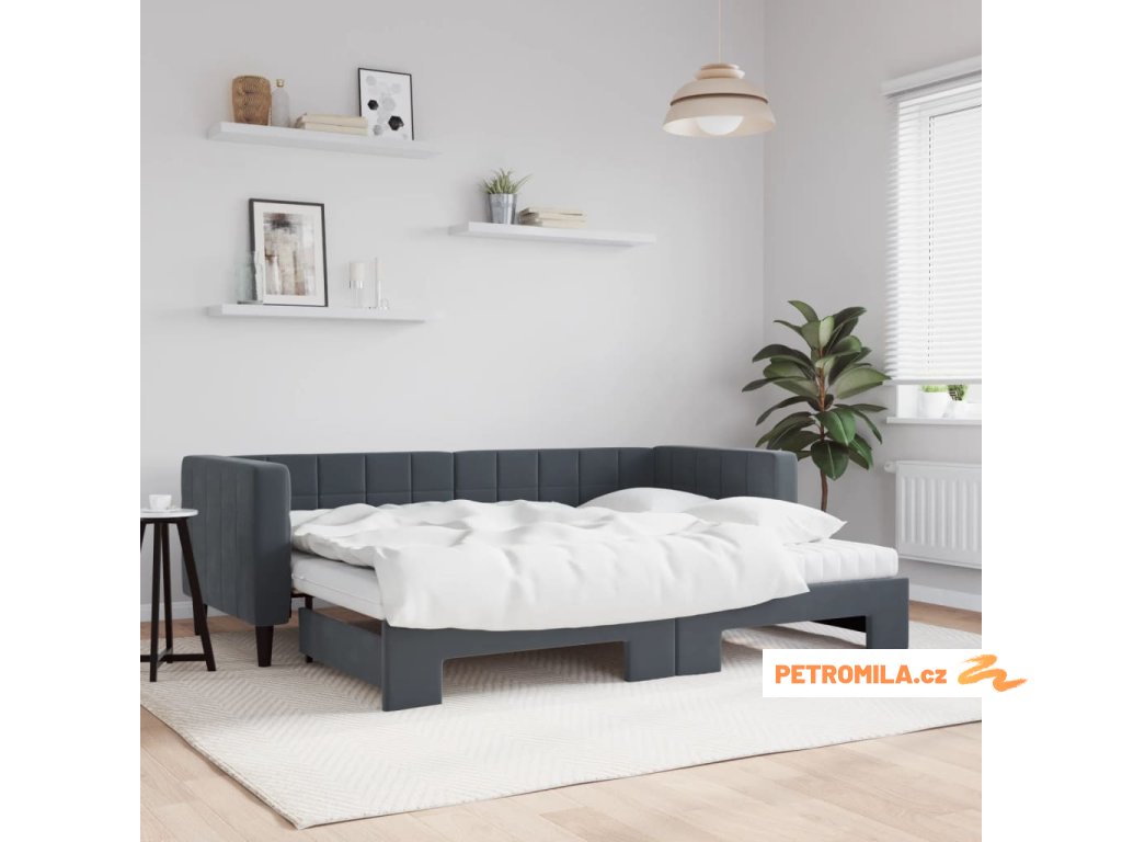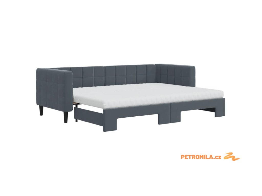 Válenda s přistýlkou a matracemi tmavě šedá 80 x 200 cm samet