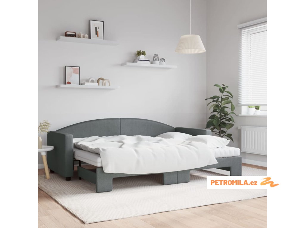 Válenda s přistýlkou a matracemi tmavě šedá 80 x 200 cm textil