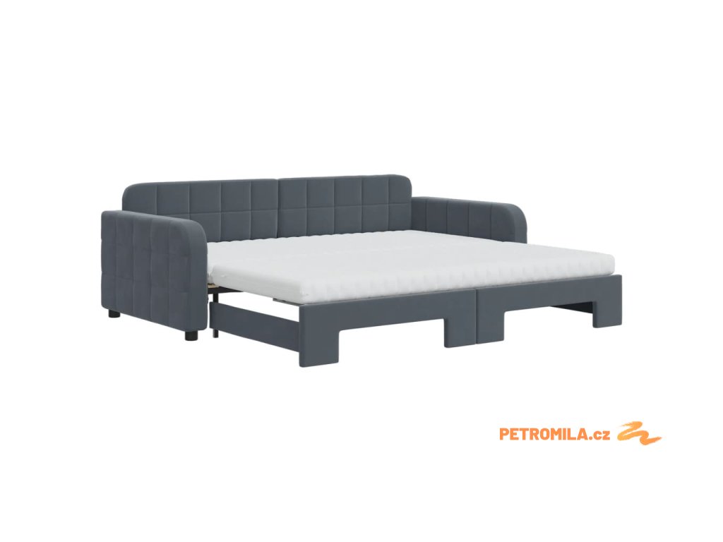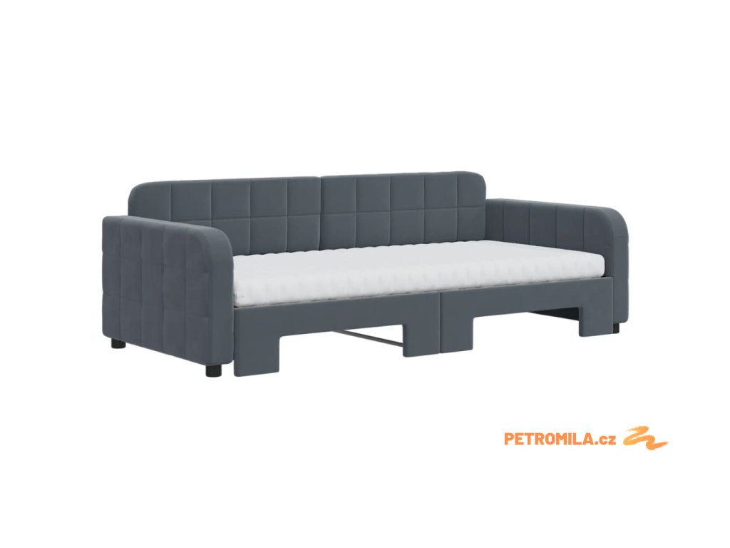 Válenda s přistýlkou a matracemi tmavě šedá 90 x 190 cm samet