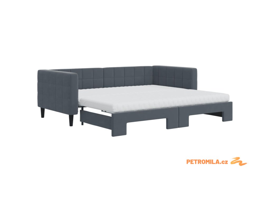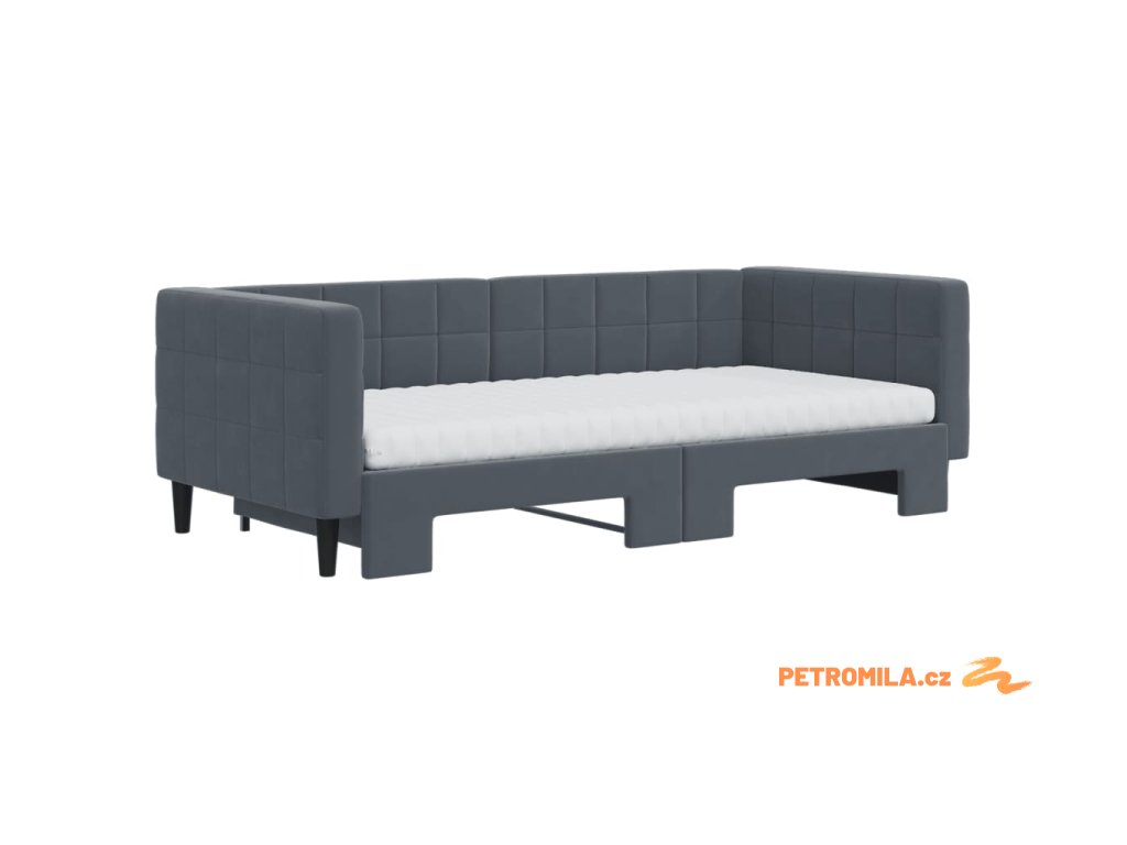 Válenda s přistýlkou a matracemi tmavě šedá 90 x 190 cm samet