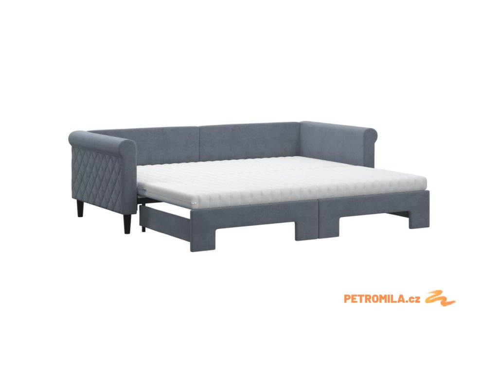 Válenda s přistýlkou a matracemi tmavě šedá 90 x 200 cm samet