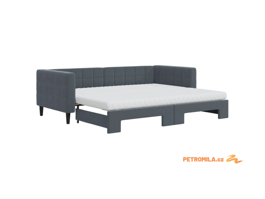 Válenda s přistýlkou a matracemi tmavě šedá 90 x 200 cm samet