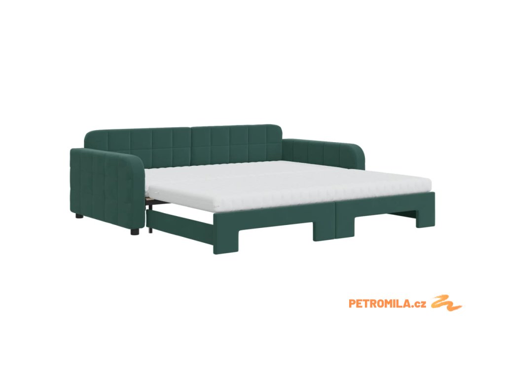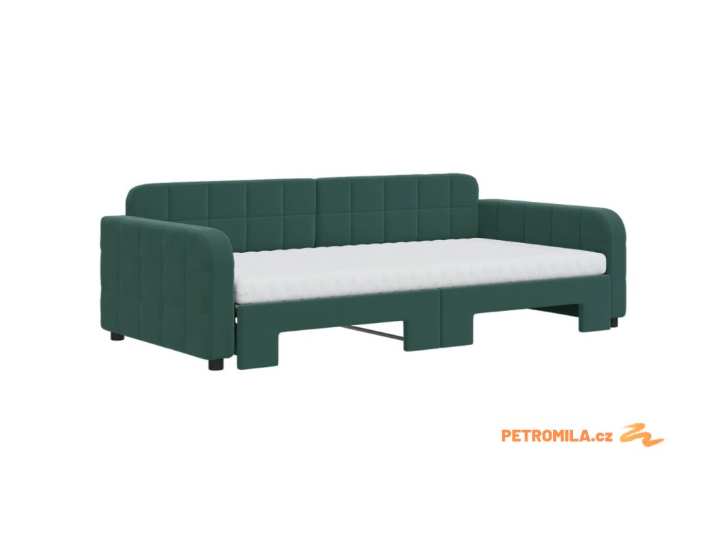 Válenda s přistýlkou a matracemi tmavě zelená 100x200 cm samet