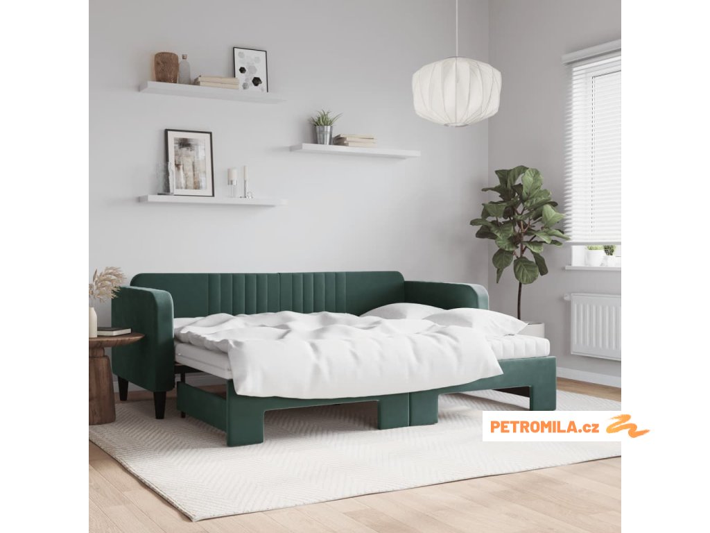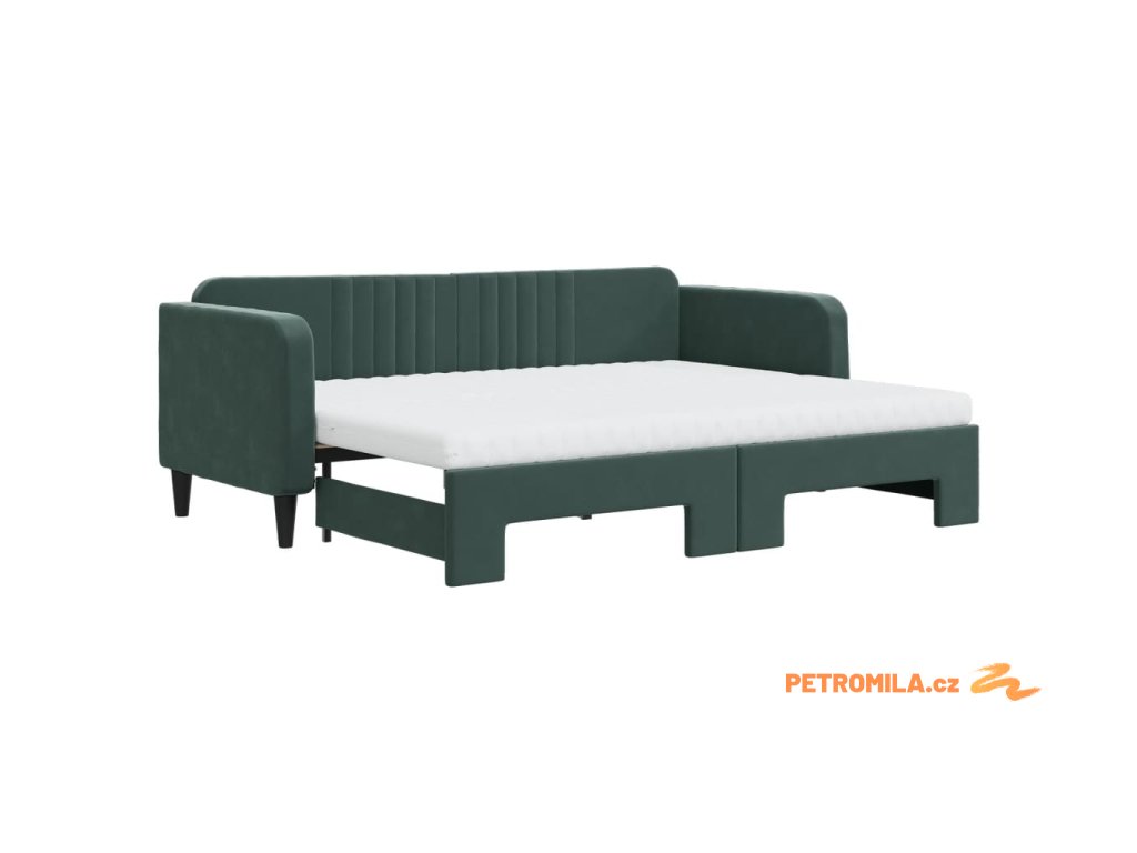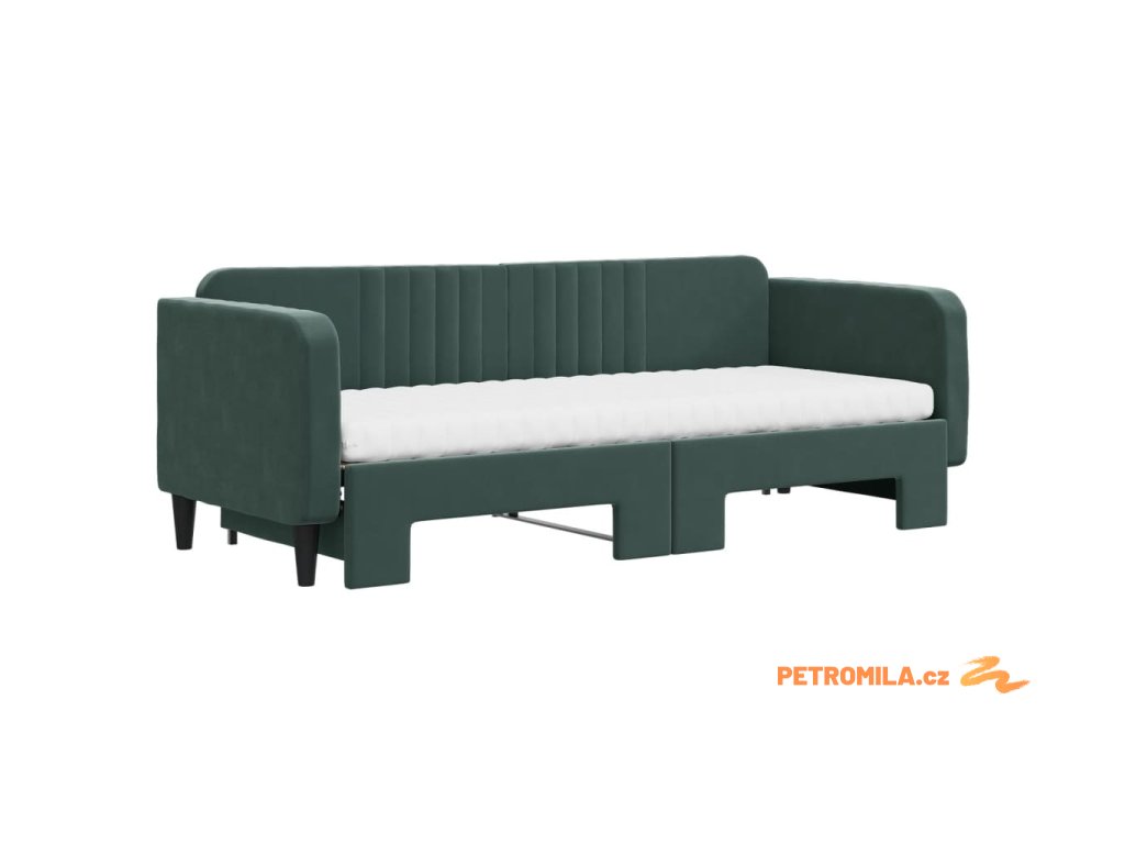 Válenda s přistýlkou a matracemi tmavě zelená 80 x 200 cm samet