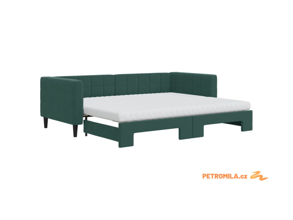Válenda s přistýlkou a matracemi tmavě zelená 90 x 200 cm samet